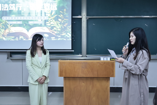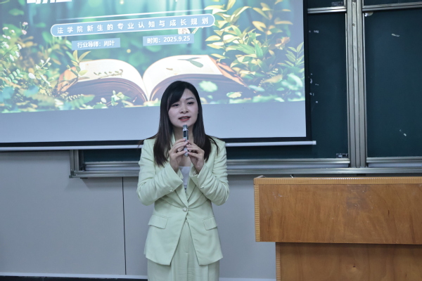 文法学院讯 9月25日下午3时,文法学院在弘德楼601教室为2025级法学专业新生举办了一场主题为“明法笃行,砺能致远”的讲座,主讲嘉宾为武汉山河律师事务所的周叶律师。学院党总支书记陈敏主持,她介绍了此次讲座的意义以及周叶律师的履历,并代表全体同学欢迎并感谢周叶律师的到来。