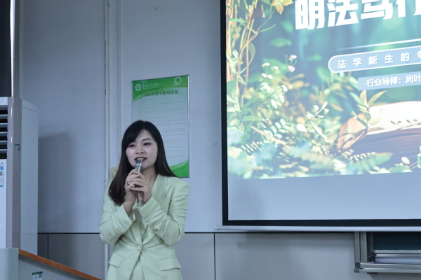 周叶律师的讲座围绕“明法笃行,砺能致远”的主旨展开,通过多个环节进行讲解,穿插周叶律师对法律的独到理解、亲身经历的案例故事,以及法律人之间的爱恨情仇。