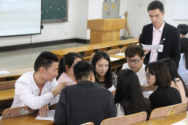 图为宣讲会上我院学生在进行无领导讨论 摄影:梁逸飞