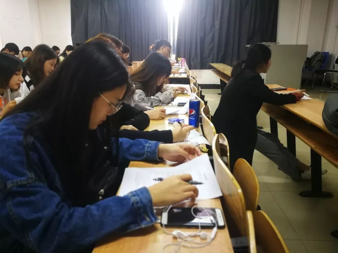 图为物流学院2018届毕业生梁逸飞为同学们答疑解惑