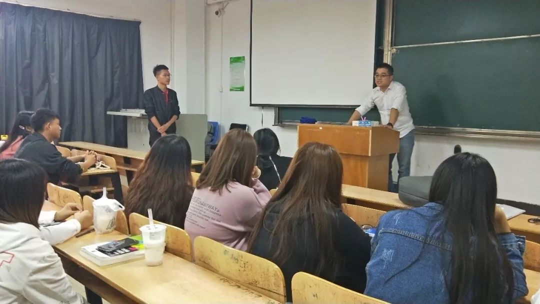 本网讯(记者 朱梦晓)10月23日13:00,深圳北领科技物流有限公司华中大区人事经理陈坤在英国正版365官网综合楼105教室,为物流学院即将进入课程实训的学生开展训前培训和动员,2017级物流管理专业和物流工程专业100多名学生参加培训。物流学院2018届毕业生梁逸飞作为北领科技优秀管培生为同学们分享工作感受。