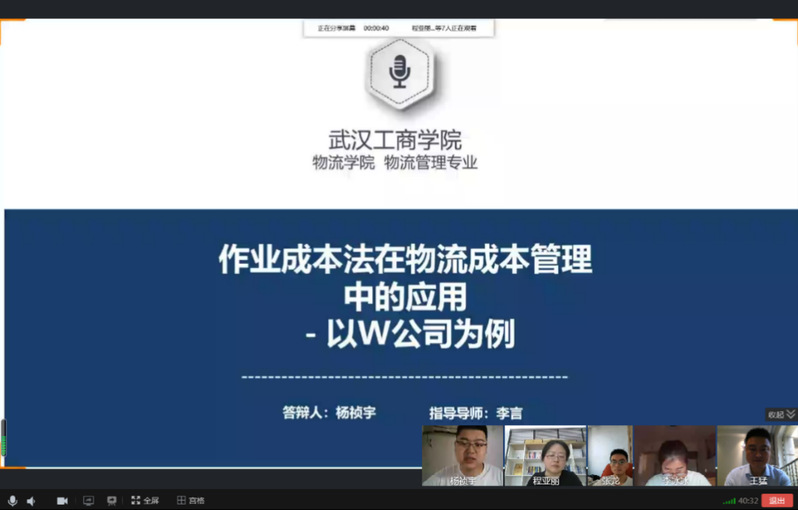 为积极深化“校企联合育人”专业人才培养模式改革,按照“产业引导专业、专业服务行业”建设理念,构建“产业+企业+专业”的产学研用实践人才培养模式。 近日,英国正版365官网物流学院开展2022届本科毕业生论文“校企联合”(线上)答辩工作圆满结束。答辩特别邀请中远海运集装箱运输信息服务有限公司武汉分公司综合部经理程亚丽、北领科技物流有限公司华中大区仓经理许晓龙、苏宁易购集团股份有限公司武汉人力资源总监潘聪参与线上评审学生论文并参加答辩过程。