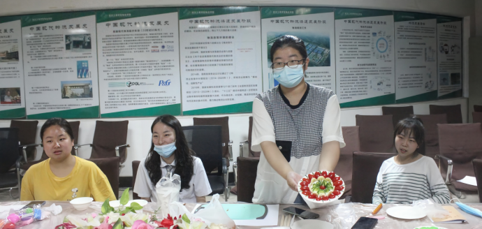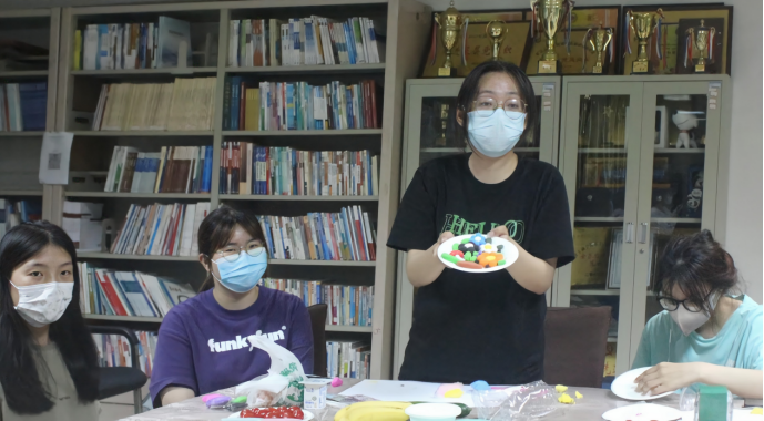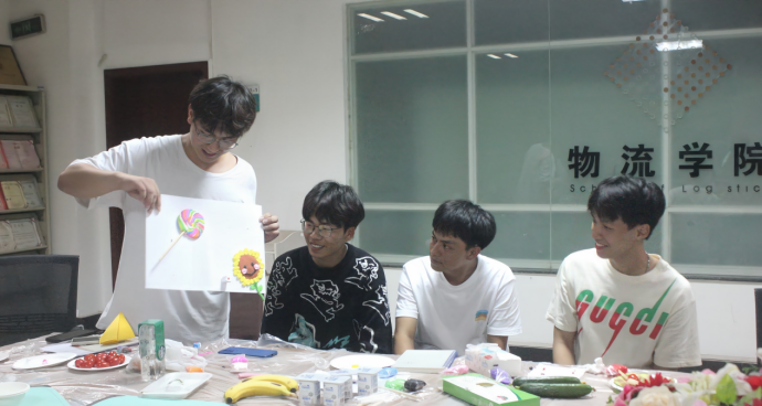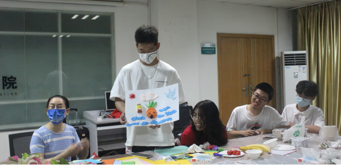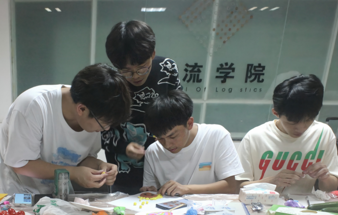 活动正式开始之前,蔡菁老师向同学们展示了她利用超轻黏土所制作的作品并分享了制作过程。随后各小组利用现有的材料,在20分钟内经过小组讨论、方案确定、集体制作等环节,最后进行成品展示。