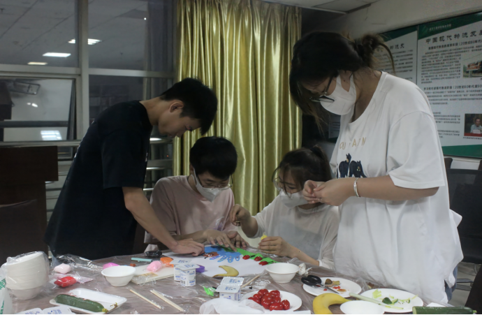 在第二部分的活动实践中,同学们充分利用了提供的蔬菜水果,大胆的对食材进行雕刻,尝试用不同的造型摆盘。平日里平平无奇的食材经过学生们充满想象力的创造后,风格迥异,散发各自的魅力。