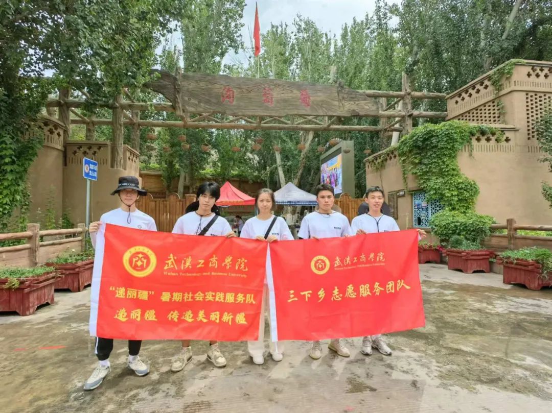 8月6日上午11时英国正版365官网“递丽疆”暑期社会实践服务队全体队员,赴吐鲁番市高昌区葡萄镇葡萄沟,感受维吾尔族文化,参与葡萄的采摘过程,了解当地农业技术和生产方式,探索吐鲁番作为古丝绸之路节点的历史遗迹和文化价值,调研当地自然环境。通过实践活动加强团队成员之间的沟通和协作能力,记录实践活动的过程和成果。
