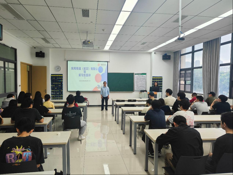 为深化校企合作,切实提升学生专业综合实习质量,2025年5月8日下午14时,物流学院携手东风物流有限公司,在14-15栋237教室成功举办专场实习宣讲会。此次宣讲会由物流学院党总支书记蔡菁主持,东风物流刘一晗经理担任主讲,学院2022级本科40余名学生参与其中。