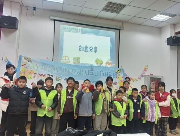本次社区寒假爱心托管班以解决双职工家庭及新业态劳动者子女假期“看护难”问题为出发点,采用“安全看护+学业辅导+素养提升”三位一体的服务模式。冯罗宾汉同学全程参与托管班志愿服务工作,从开班到结业,始终以认真负责的态度投入各项工作,与其他高校志愿者通力协作,为社区孩子们带来全方位的假期陪伴。