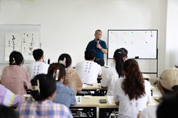 整场课堂气氛活跃,学员们专心听讲,参与度高,纷纷表示受益匪浅。“听了老师的讲解,我发现笔尖下流转的不止是墨香,更是国学文化的传承与发扬。今后,我一定会坚持练习书法,做到持续精进。”来自文法学院2021级新闻学专业的学员杨培分享道。