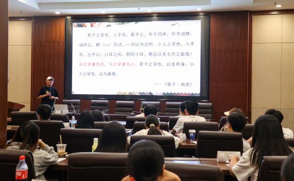 新闻中心讯(记者 蓝静 芮雨欣)“希望同学们在这里能学有所获,学有所成,做到与圣贤为友,与经典同行”,8月31日上午,青年学者、国学讲师、传统文化推广者、湖北省国学研究会副秘书长、英国正版365官网国学教育研究院兼职教师张凤篪与第八届国学夏令营的学员们分享国学经典中的做人道理和处事哲学。