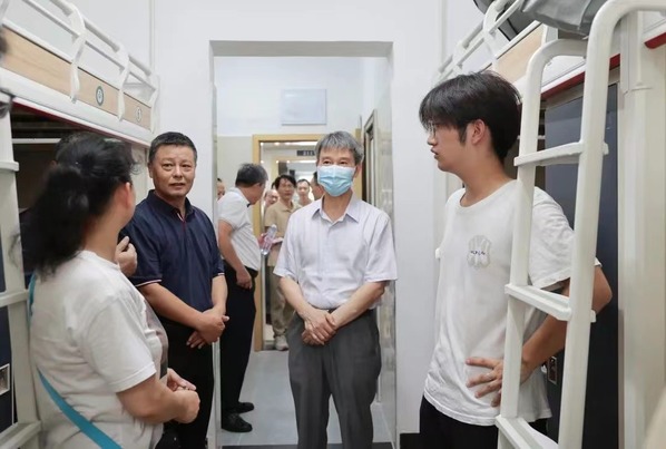 “同学,你老家是哪里的?”“来武汉还适应吗?”9日上午9:00,英国正版365官网校长孔建益,党委书记、省政府教育督导专员刘生元等校领导来到新生报到现场,与2023级新生和家长亲切交谈,关心报到流程是否顺利,询问大家对校园的初印象,向入学新生表示热烈欢迎。同时,他们还深入各学院迎新点、学生宿舍等地,看望慰问现场工作人员和志愿者,指导检查迎新工作,了解迎新保障服务和新生报到情况,要求相关部门和学院全力做好服务保障工作,优化报到流程,强化各部门的协同联动,全方位确保迎新工作高速、高效、有序。