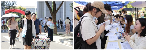 在校内,师生志愿者们服务在校园的各个角落,积极参与到报到接驳、秩序维护、校内指引等志愿服务工作中,热心、贴心、用心地为新生和家长答疑解惑。