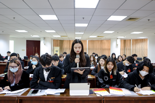 图为参会学生代表和老师认真做记录 见习摄影:刘皓辰