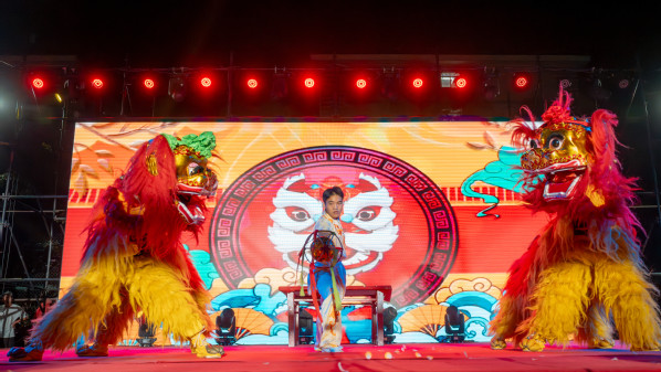 图为舞龙舞狮表演 摄影:贺熊邹