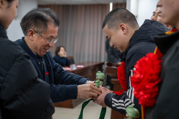 随后,幸福堂为11名准新兵逐一颁发入伍纪念礼品。一份份承载着母校关怀与期盼的纪念品,既是对学子参军报国的高度认可,也饱含着学校对大家军旅生涯的美好祝福。幸福堂与准新兵亲切交流,叮嘱大家牢记母校嘱托、坚守报国初心,在军营严守纪律、苦练本领,努力成为有灵魂、有本事、有血性、有品德的新时代革命军人,为母校争光、为家乡添彩、为国防和军队现代化建设贡献青春力量。