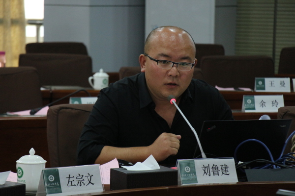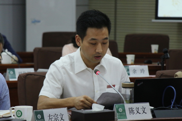图为陈义文部长介绍绿色校园建设情况 摄影:刘竞