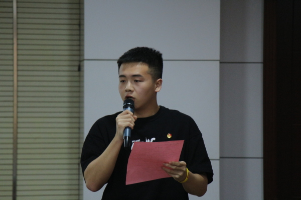 图为学生代表宣读《青年学子水生态保护倡议书》 摄影:刘竞
