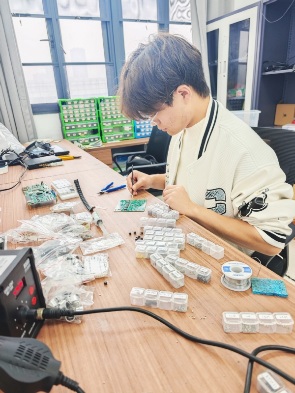 从此,赵双明开始了比同龄人更紧凑的“双线生活”:寒暑假在酒店打工赚取生活费,下班后仍继续调试项目、研究电路;在校期间则借助学校竞赛奖励、协助老师完成课题、承接技术定制等方式,持续投入学习与开发。他将时间规划得严密有序,假期侧重实践积累,学期专注课程与项目。