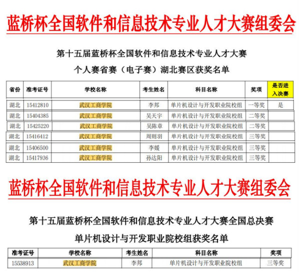 恭贺我院六位同学参加第十五届蓝桥杯全国软件和信息技术电子赛单片机组获得国赛三等奖1项、省级一等奖1项、二等奖2项、三等奖3项的优异成绩。