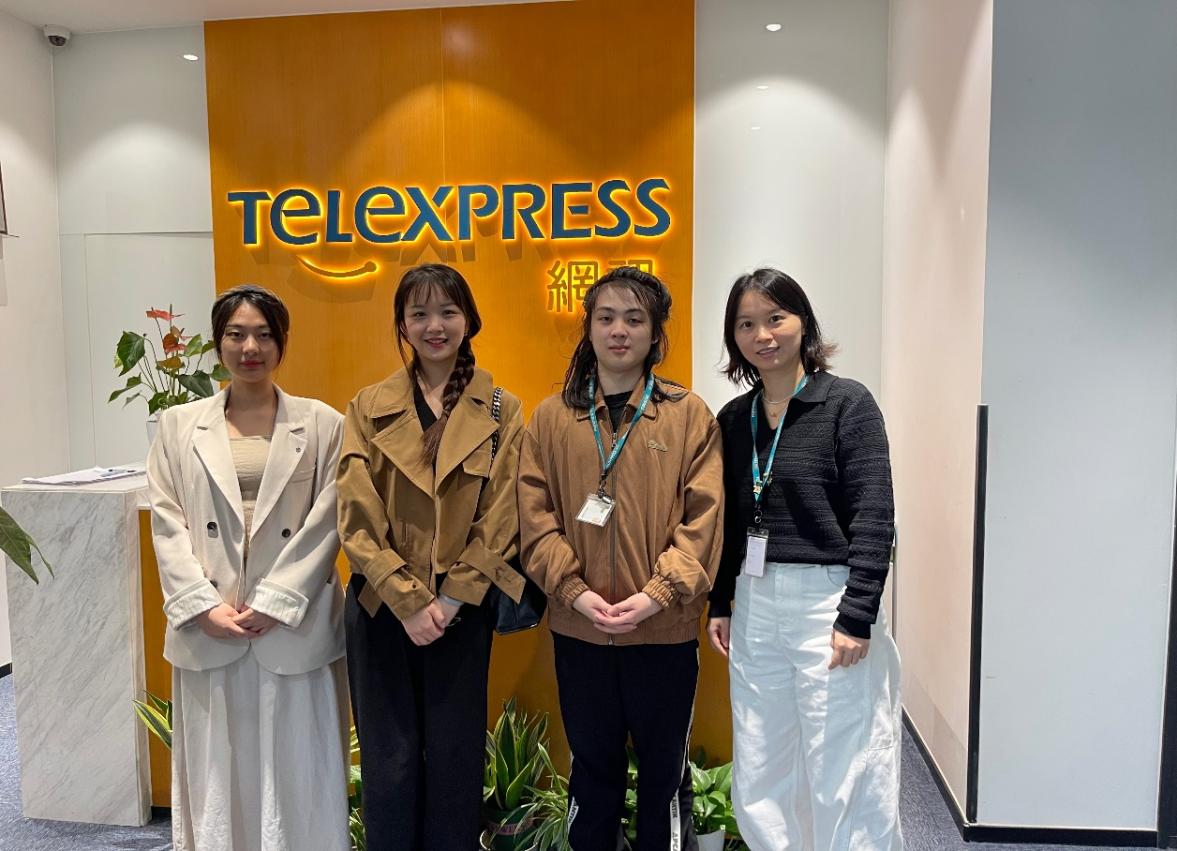 图1-实习走访,左一、二22级辅导员,右一陈经理、右二谢欣扬