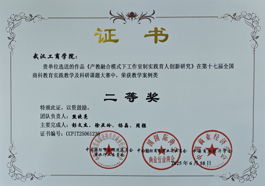 我院推送的作品《产教融合模式下工作室制实践育人创新研究》在全国商科教学科研课题大赛中—荣获教学案例类二等奖。